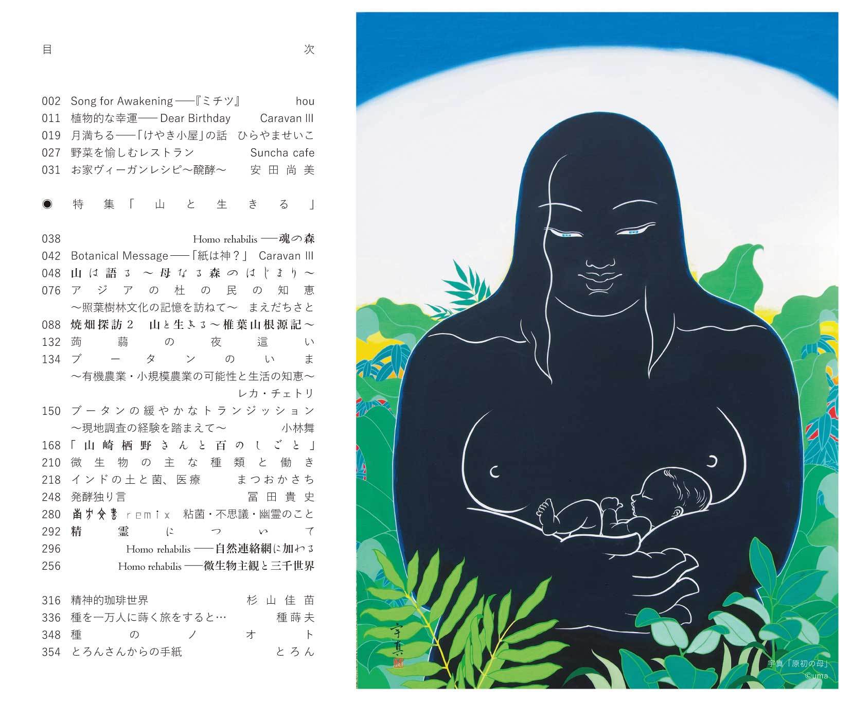 農藝ハンドブック第2号のテーマは「山と生きる」。宮崎県椎葉村で今も行われる焼畑と現地の民俗をメインに、照葉樹林文化、土壌の発酵、森林生態系の循環、微生物や動植物とヒトの共存などについて、ミクロとマクロの領域を照らし合わせ、根源に立ち返って見つめなおします。循環するいのちの複合体として山をとらえるとき、自ずからそこに含まれているヒトの役割とは何か、どこに調和を見出だすのか……。